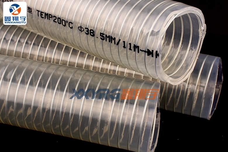 性質(zhì):透明、耐酸堿、耐油、耐高溫、高壓、使用壽命長;抗高壓、真空、抗壓縮、非常流暢、良好的抗化學性,高強度鍍鋅鋼絲螺旋內(nèi)嵌于柔韌性很強的管子內(nèi)壁中, 透明管體,可見性的流體輸送和易空流量;