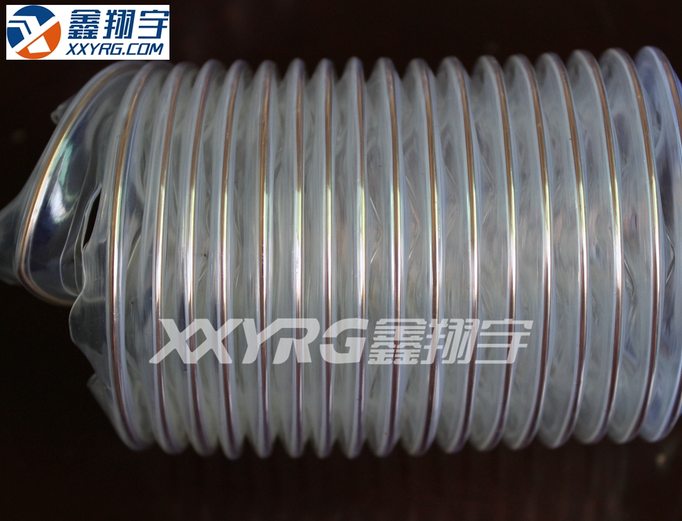顏色:透明PU管壁,帶鍍銅色包塑鋼絲螺旋加強(qiáng)